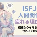 人間関係において、なぜか自分ばかりが消耗してしまう。その理由は、あなたが持つ「素晴らしい才能」と表裏一体なのです。この記事では、ISFJが人間関係で疲れる理由を紐解きながら、その繊細な心を守るための具体的な対処法についてお話ししていきます。もう、一人で抱え込まなくて大丈夫ですよ。